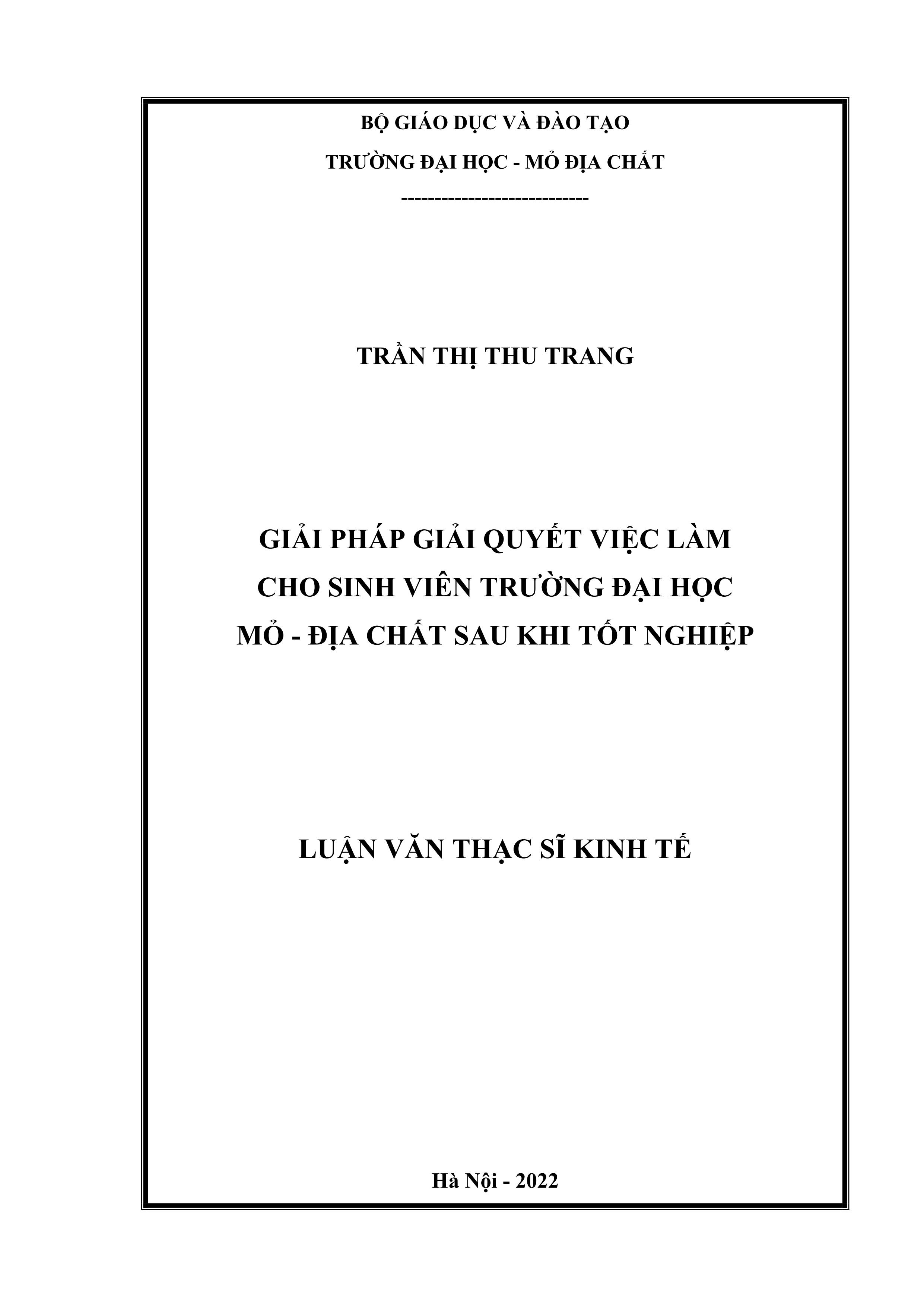 Giải pháp giải quyết việc làm cho sinh viên trường Đại học Mỏ Địa chất sau khi tốt nghiệp : Luận văn thạc sĩ Kinh tế / Thạc sĩ