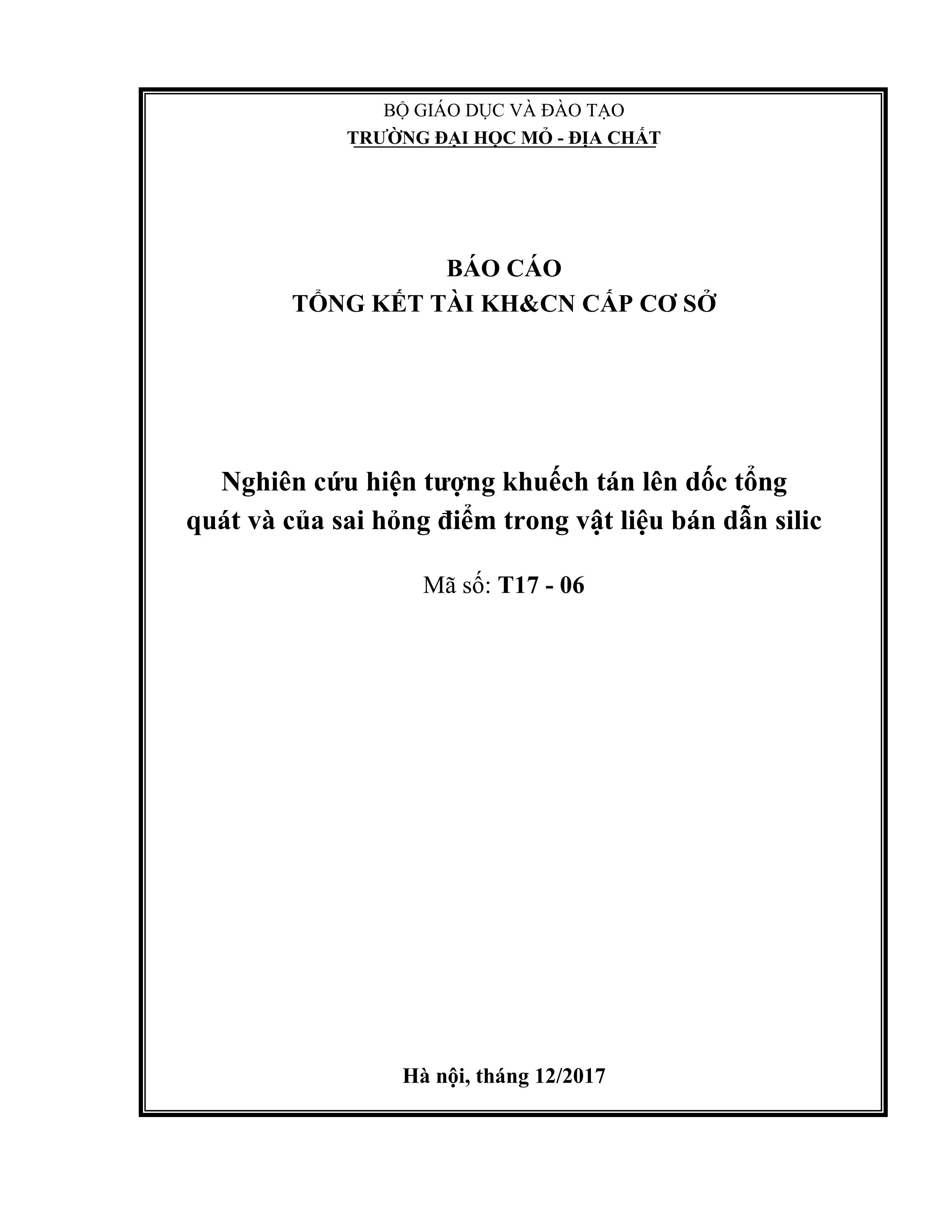 Nghiên cứu sai hỏng điểm ra trong quá trình khuếch tán đồng thời ba thành phần trog vật liệu SILIC : Đề tài cấp bộ / Vũ Bá Dũng