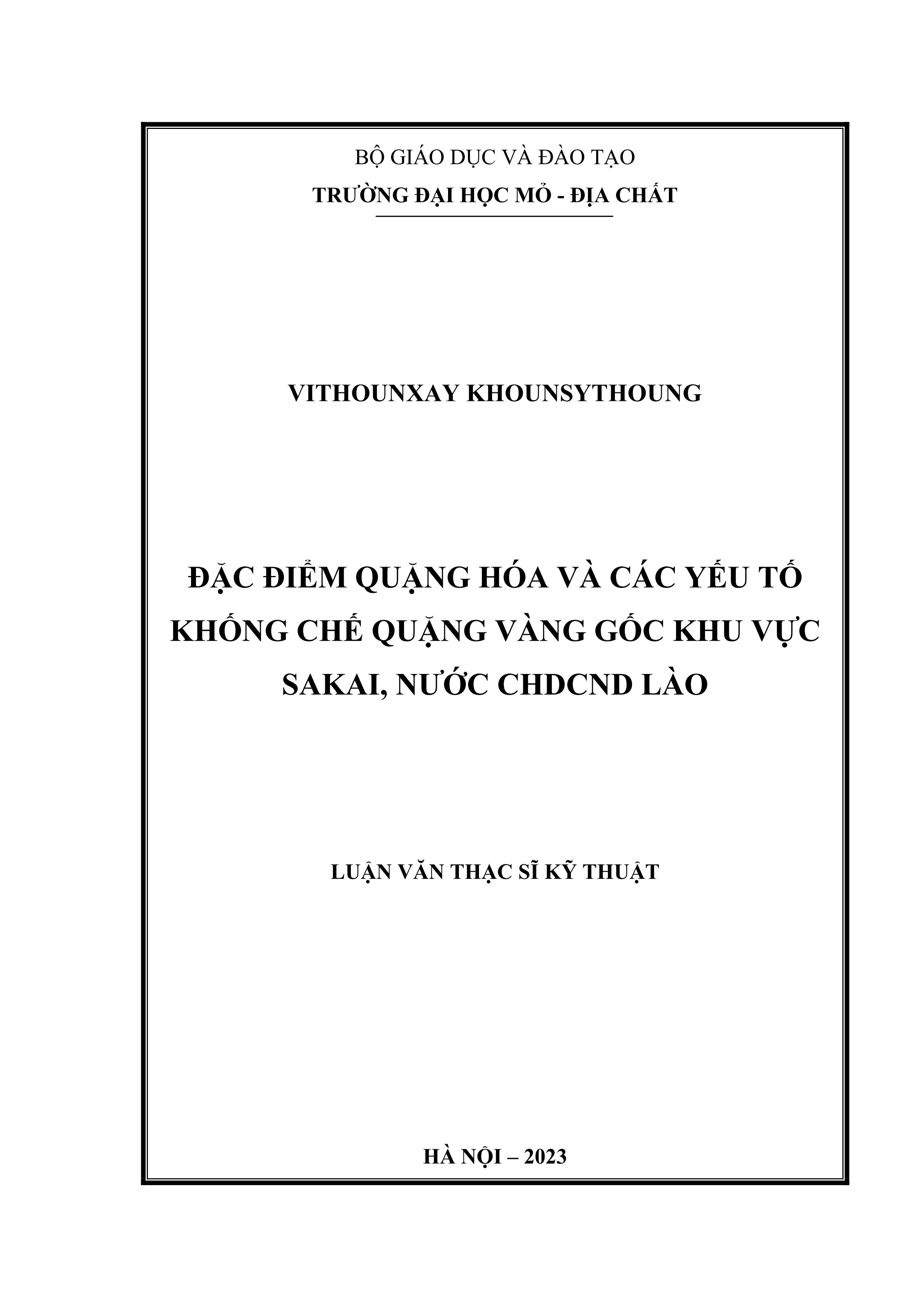 Đặc điểm quặng hóa và các yếu tố khống chế quặng vàng gốc khu vực Sakai, nước CHDCND Lào : Luận văn thạc sĩ kỹ thuật / Vithounxay Khounsythoung