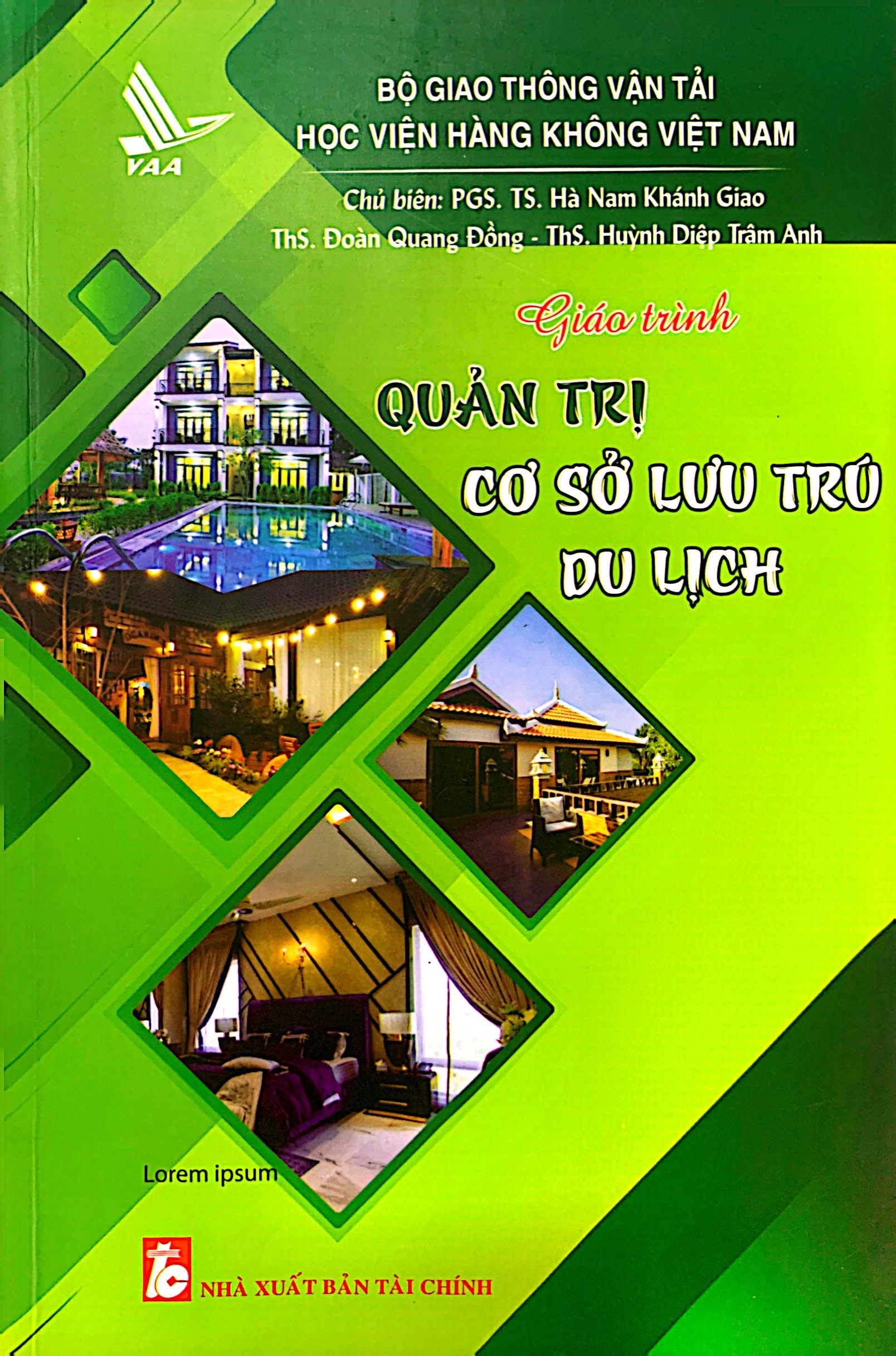Giáo trình cơ sở lưu trú du lịch / Hà Nam Khánh Giao, Đoàn Quang Đồng, Huỳnh Diệp Trâm Anh H. : Tài Chính 436tr. ; 24cm. Hà Nam Khánh Giao Tổng quan về ngành lưu trú du lịch; hoạch định chiến lược trong kinh doanh cơ sở lưu trú du lịch; cơ cấu tổ chức và quản trị nguồn nhân lực trong kinh doanh cơ sở lưu trú du lịch; quản trị và vận hành bộ phận lễ tân cơ sở lưu trú du lịch; quản trị phòng trong cơ sở lưu trú du lịch; quản trị kinh doanh dịch vụ ăn uống trong cơ sở lưu trú du lịch...