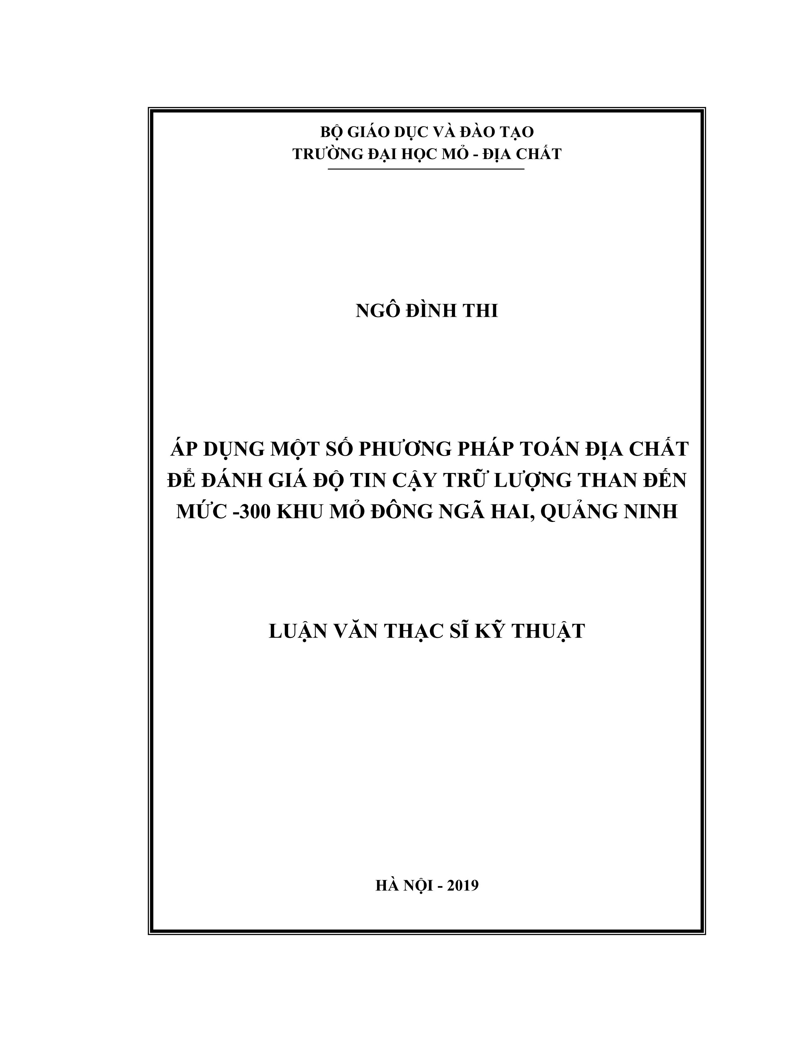 Áp dụng một số phương pháp toán địa chất để đánh giá độ tin cậy trữ lượng than đến mức -300m khu mỏ Đông Ngã Hai, Quảng Ninh : Luận văn thạc sĩ kỹ thuật / Ngô Đình Thi