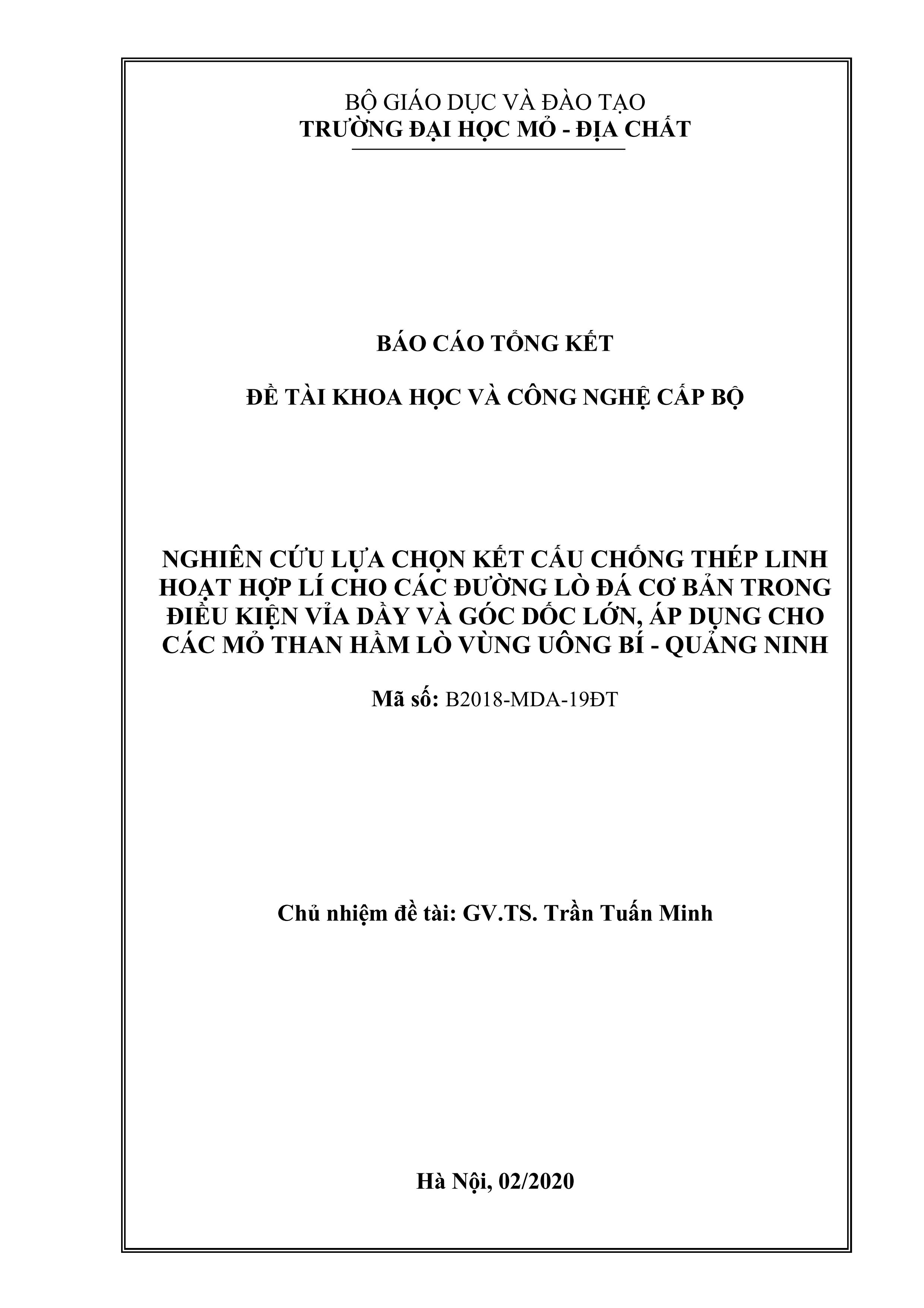 Nghiên cứu lựa chọn kết cấu chống thép linh hoạt hợp lí cho các đường lò đá cơ bản trong điều kiện vỉa dầy và góc dốc lớn, áp dụng cho các mỏ than hầm lò vùng Uông Bí - Quảng Ninh : Đề tài khoa học và công nghệ cấp bộ / Trần Tuấn Minh