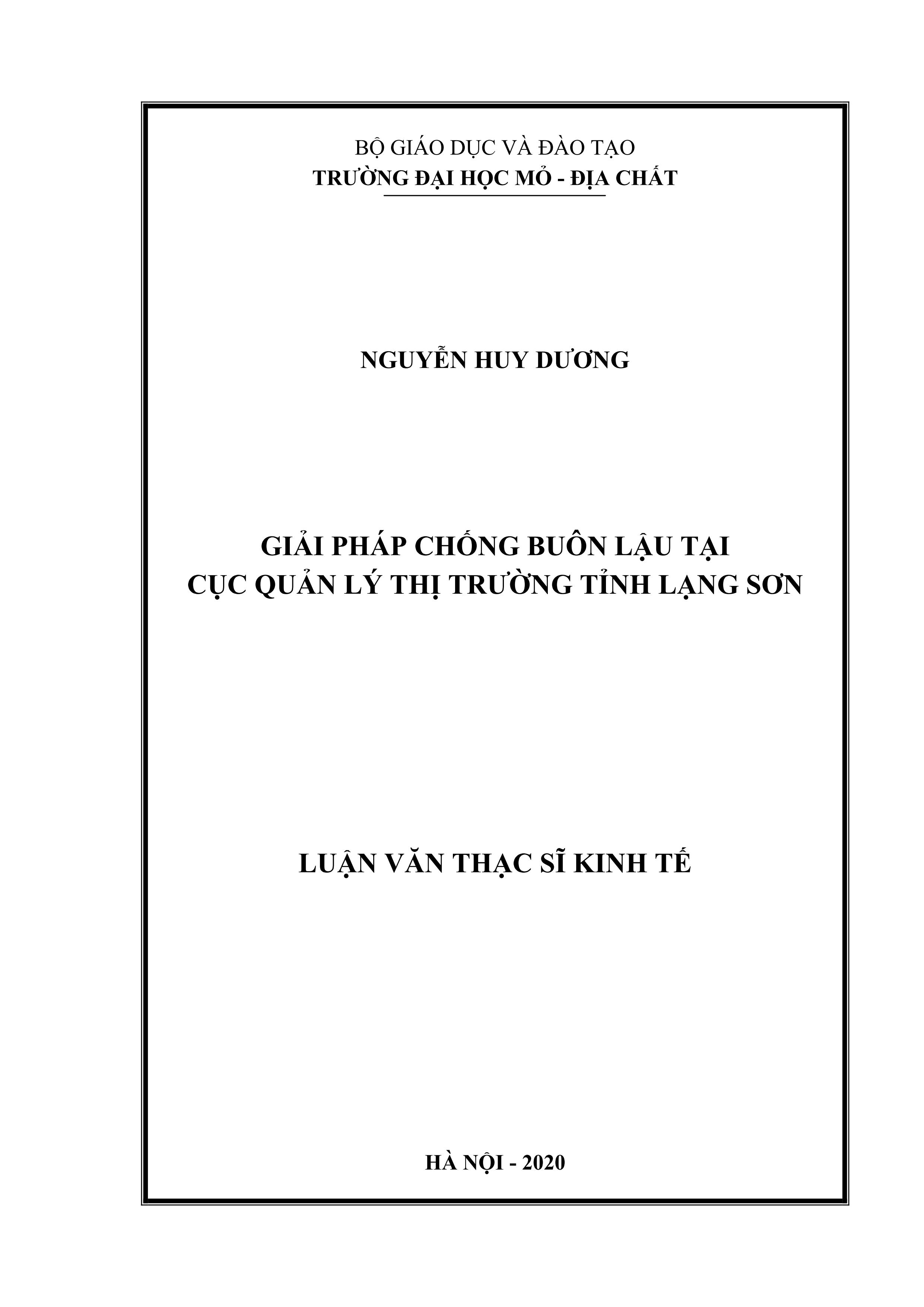 Giải pháp chống buôn lậu tại Cục quản lý thị trƣờng tỉnh Lạng Sơn : Luận văn thạc sĩ Kinh tế / Nguyễn Huy Dương