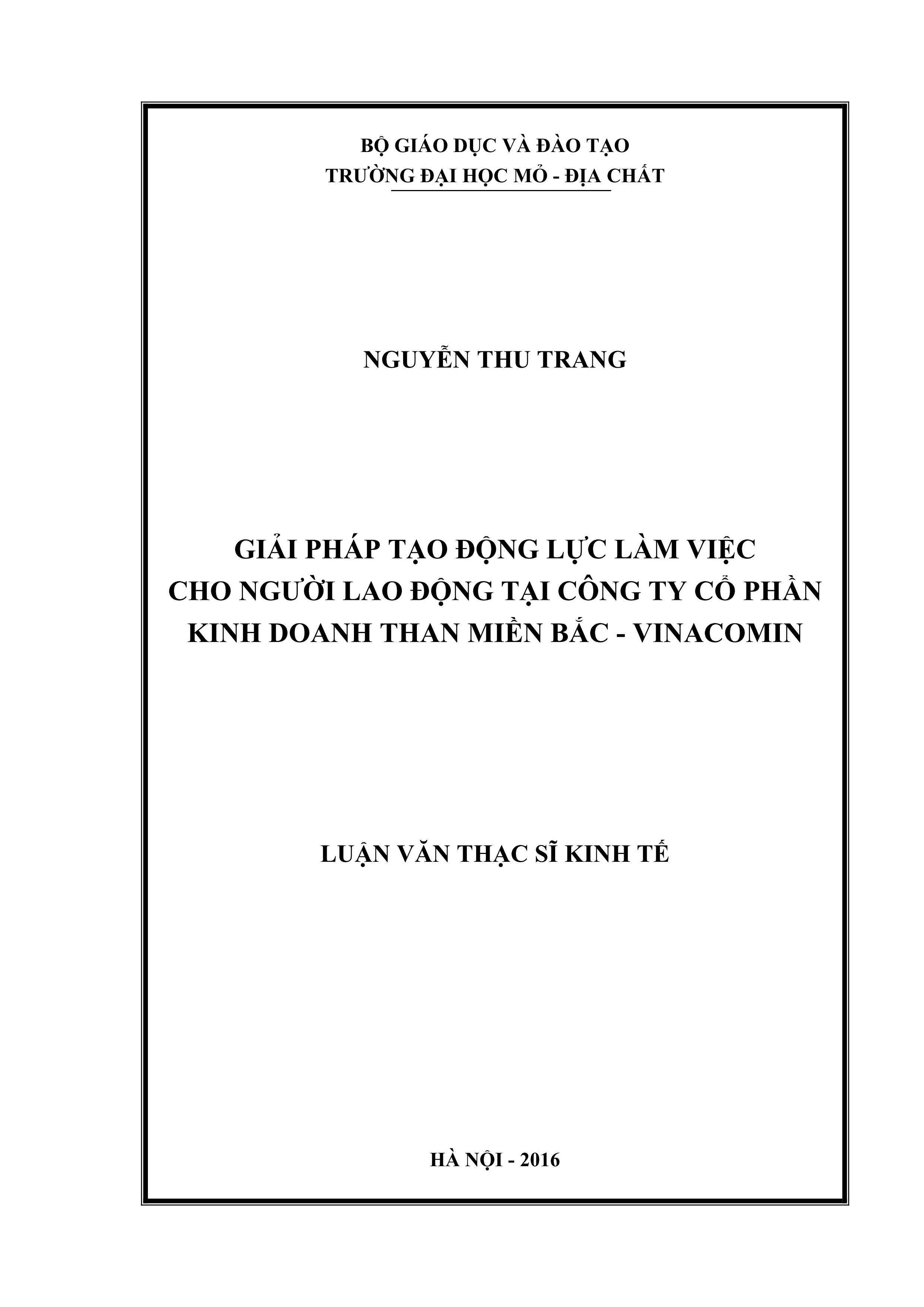Giải pháp tạo động lực làm việc cho người lao động tại Công ty cổ phần kinh doanh than Miền bắc - Vinacomin : Luận văn thạc sĩ / Nguyễn Thu Trang