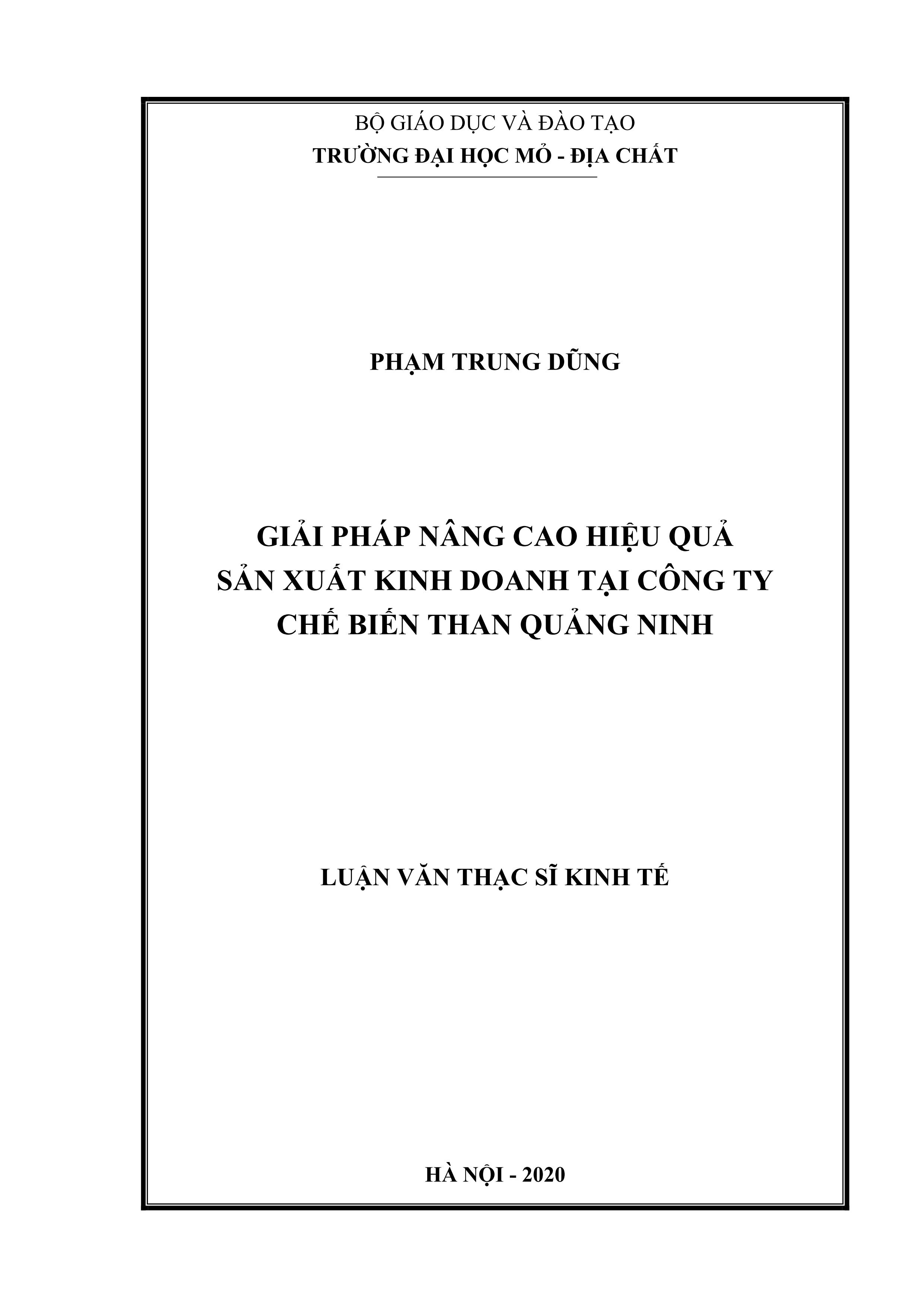 Giải pháp nâng cao hiệu quả sản xuất kinh doanh tại công ty Chế biến than Quảng Ninh : Luận văn thạc sĩ Kinh tế / Phạm Trung Dũng