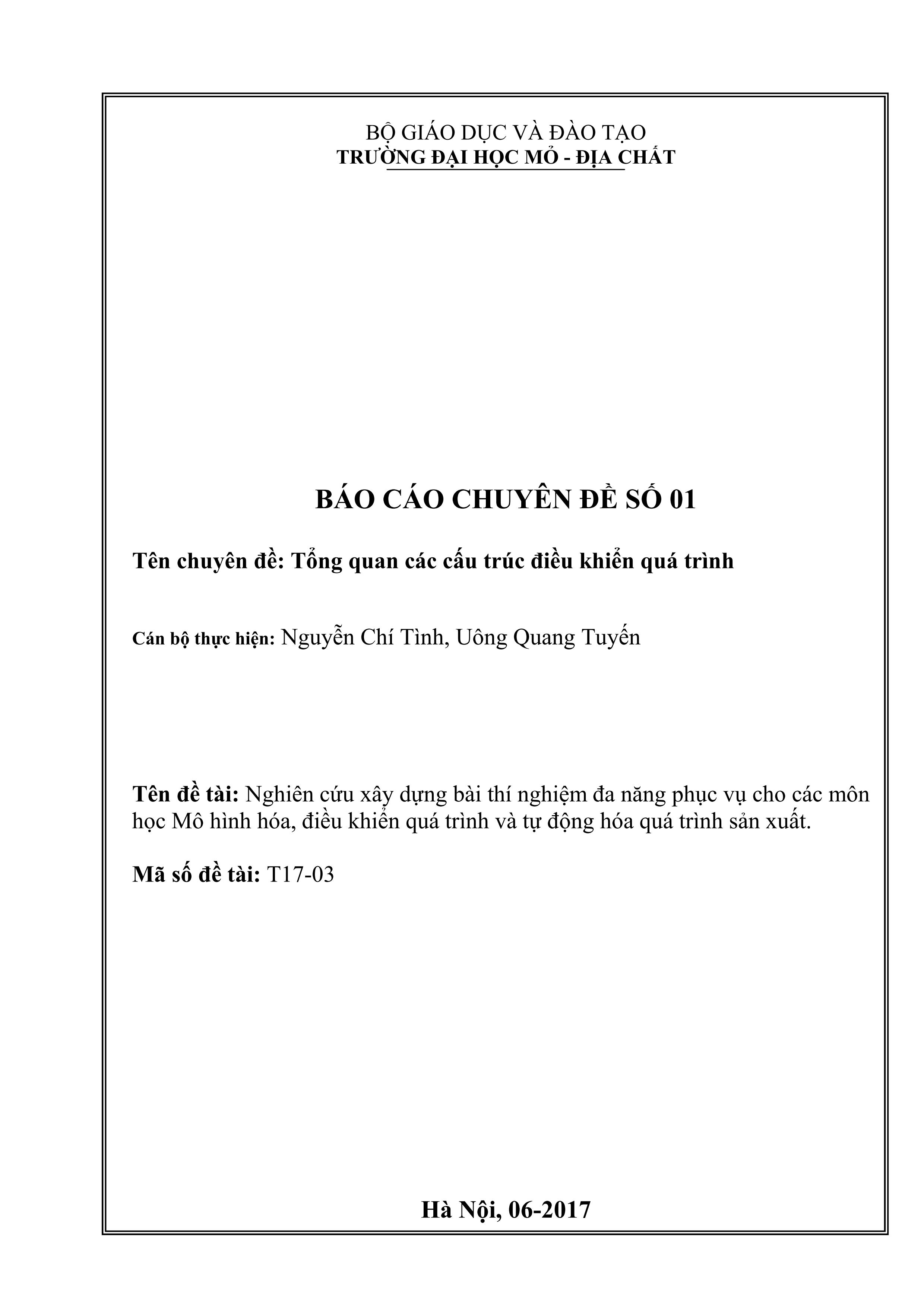 Nghiên cứu xây dựng bài thí nghiệm đa năng phục vụ cho các môn học mô hình hóa, điều khiển quá trình và tự động hóa quá trình sản xuất : Đề tài khoa học và công nghệ cấp cơ sở / Nguyễn Chí Tình