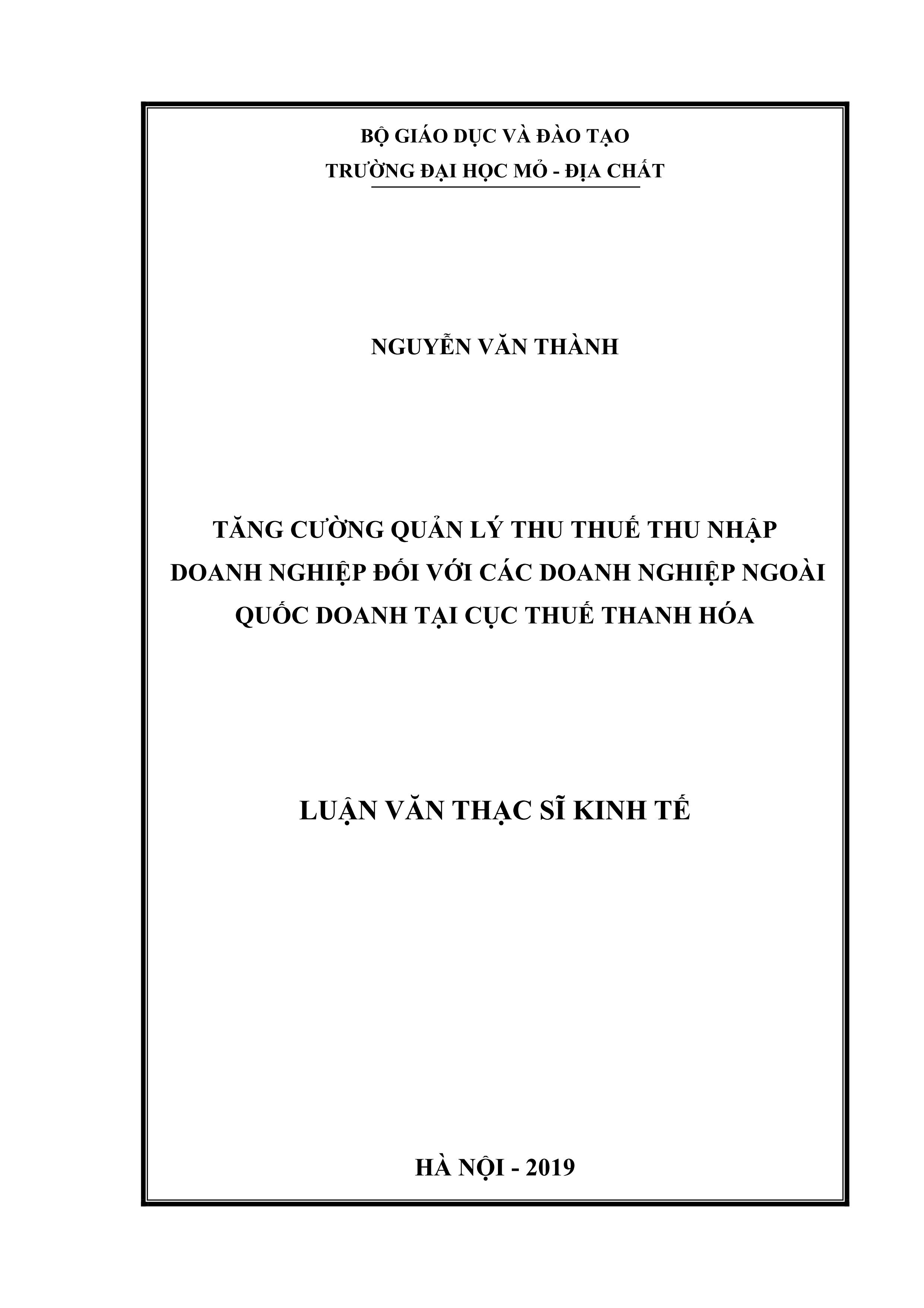 Tăng cường quản lý thu thuế thu nhập doanh nghiệp đối với các doanh nghiệp ngoài quốc doanh tại cục thuế Thanh Hóa : Luận văn thạc sĩ Kinh tế / Nguyễn Văn Thành