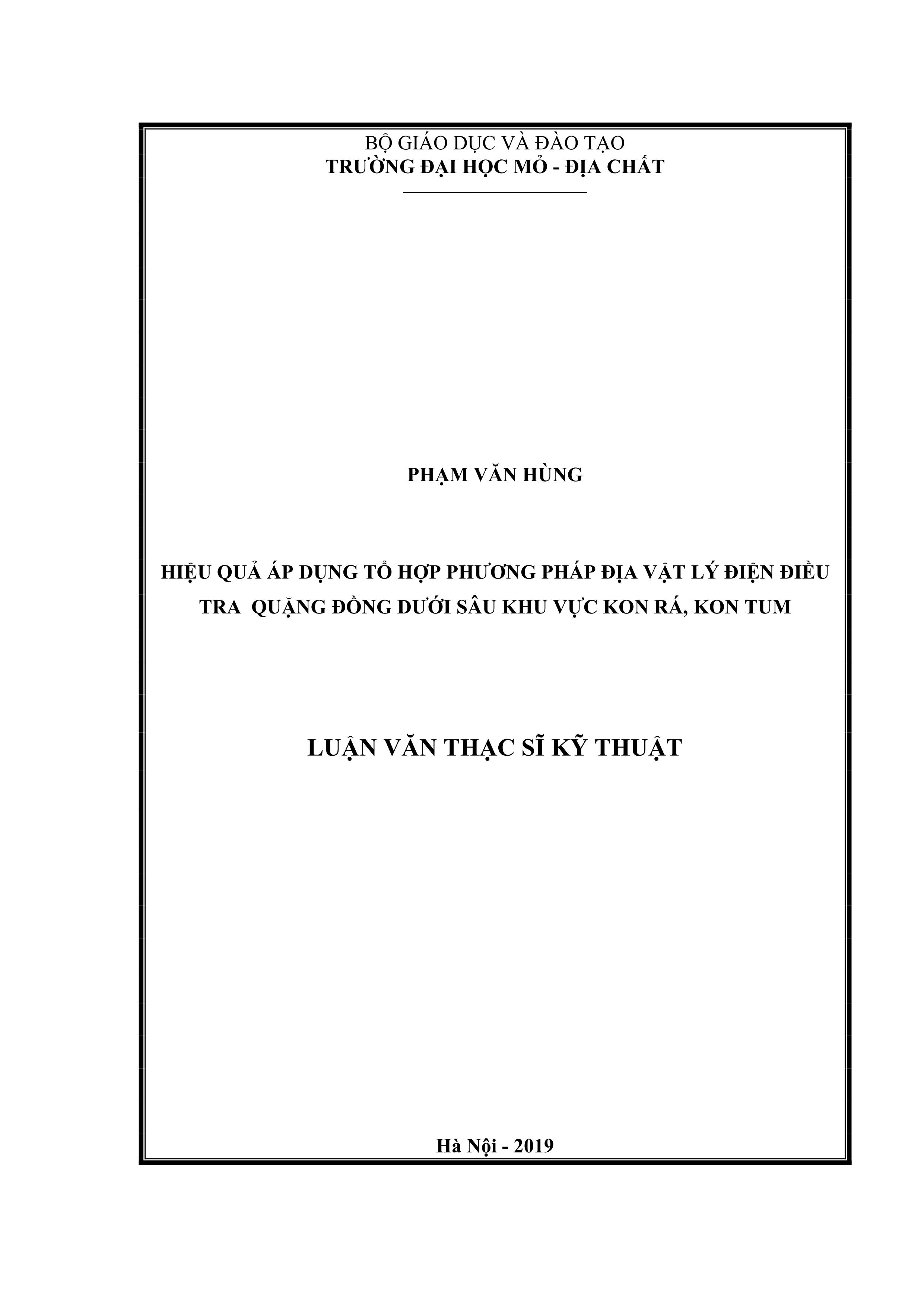 Hiệu quả áp dụng tổ hợp phương pháp địa vật lý điện điều tra quặng Đồng dưới sâu khu vực Kon Rá, Kon Tum : Luận văn thạc sĩ kỹ thuật / Phạm Văn Hùng