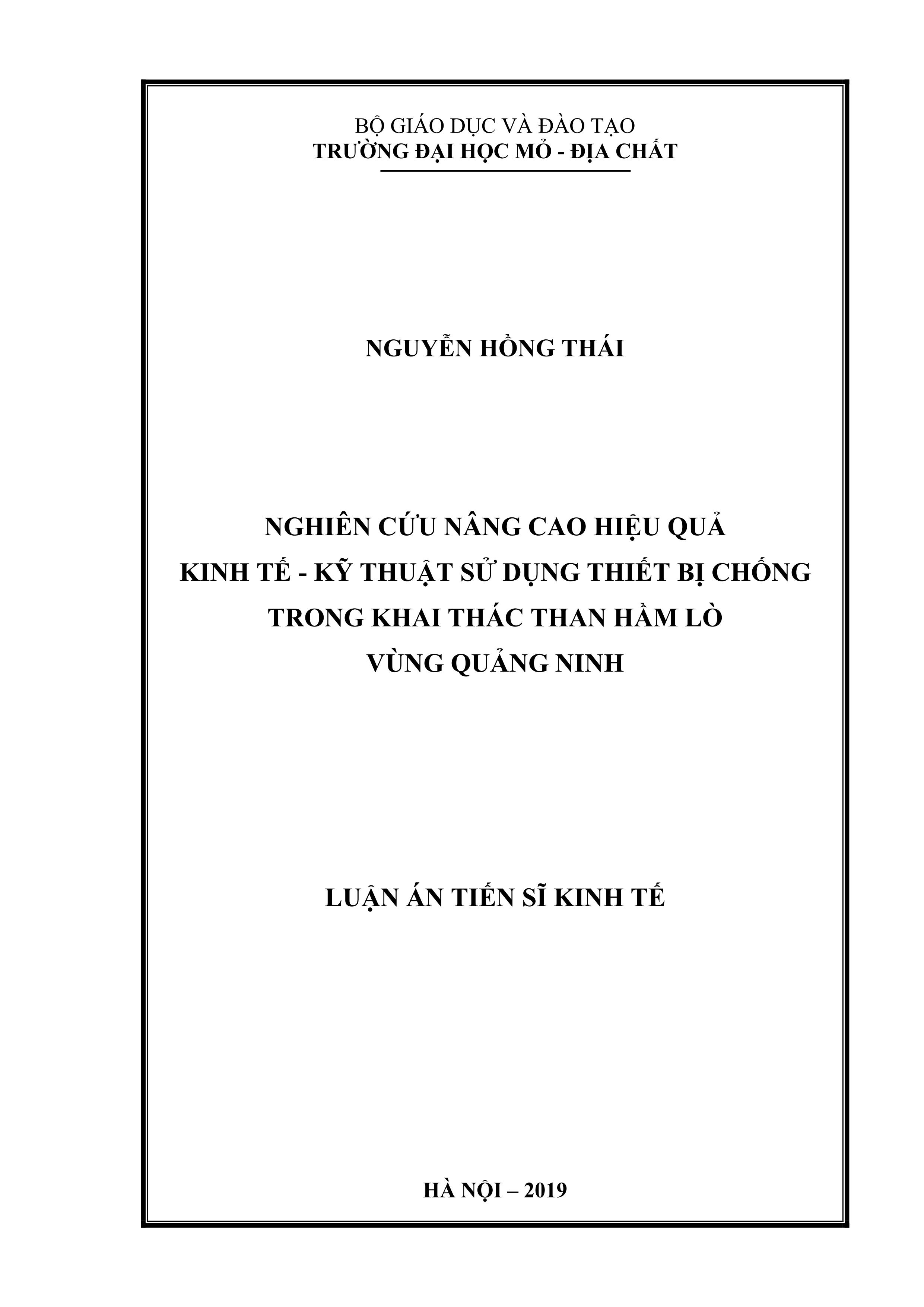 Nghiên cứu nâng cao hiệu quả kinh tế - Kỹ thuật sử dụng thiết bị chống trong khai thác than hầm lò : Luận án tiến sĩ kinh tế / Nguyễn Hồng Thái