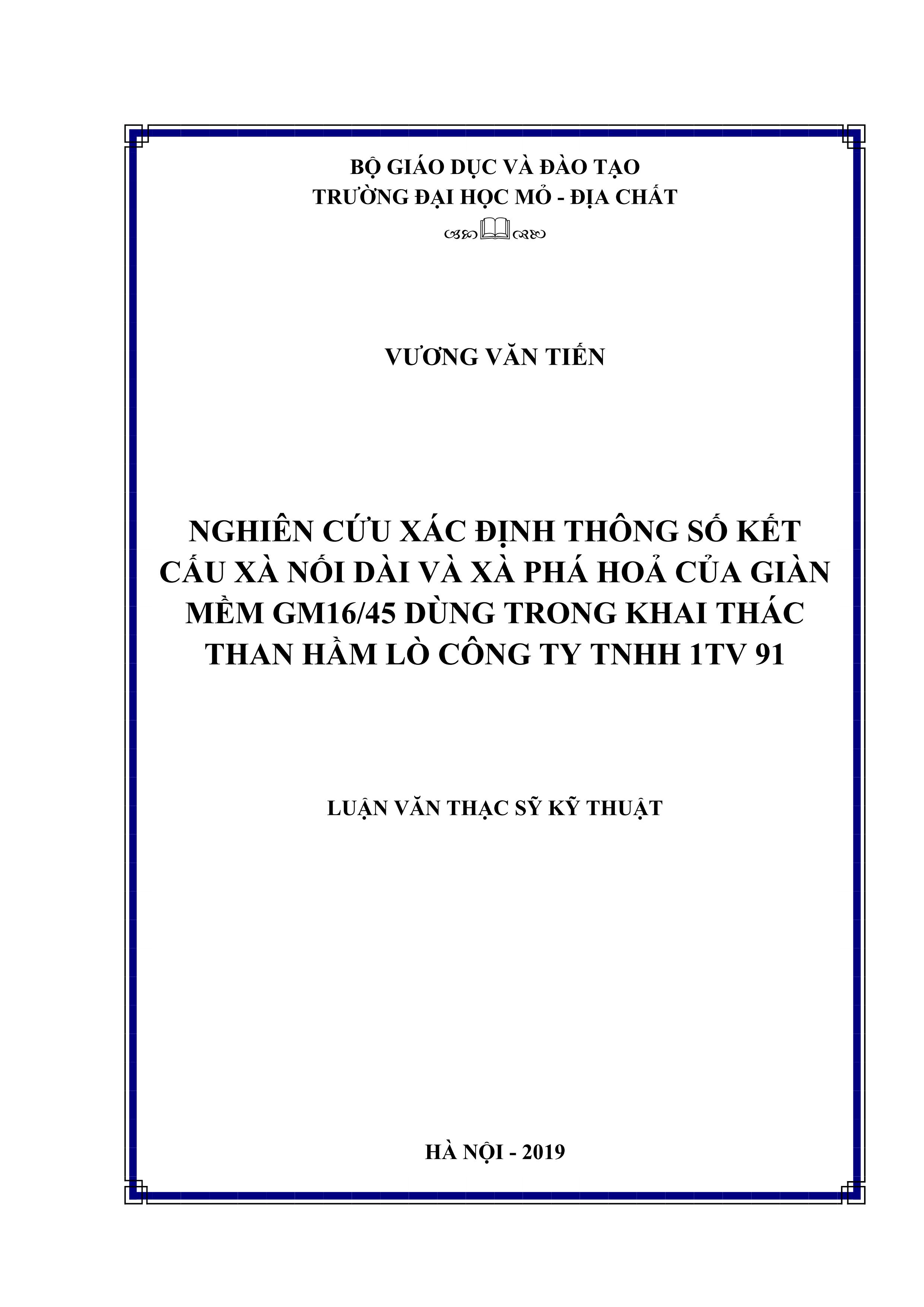 Nghiên cứu xác định thông số kết cấu xà nối dài và xà phá hỏa của giàn mềm GM16/ Luận văn thạc sĩ kỹ thuật / 45 dùng trong khai thác than hầm lò Công ty TNHH 1TV 91 :