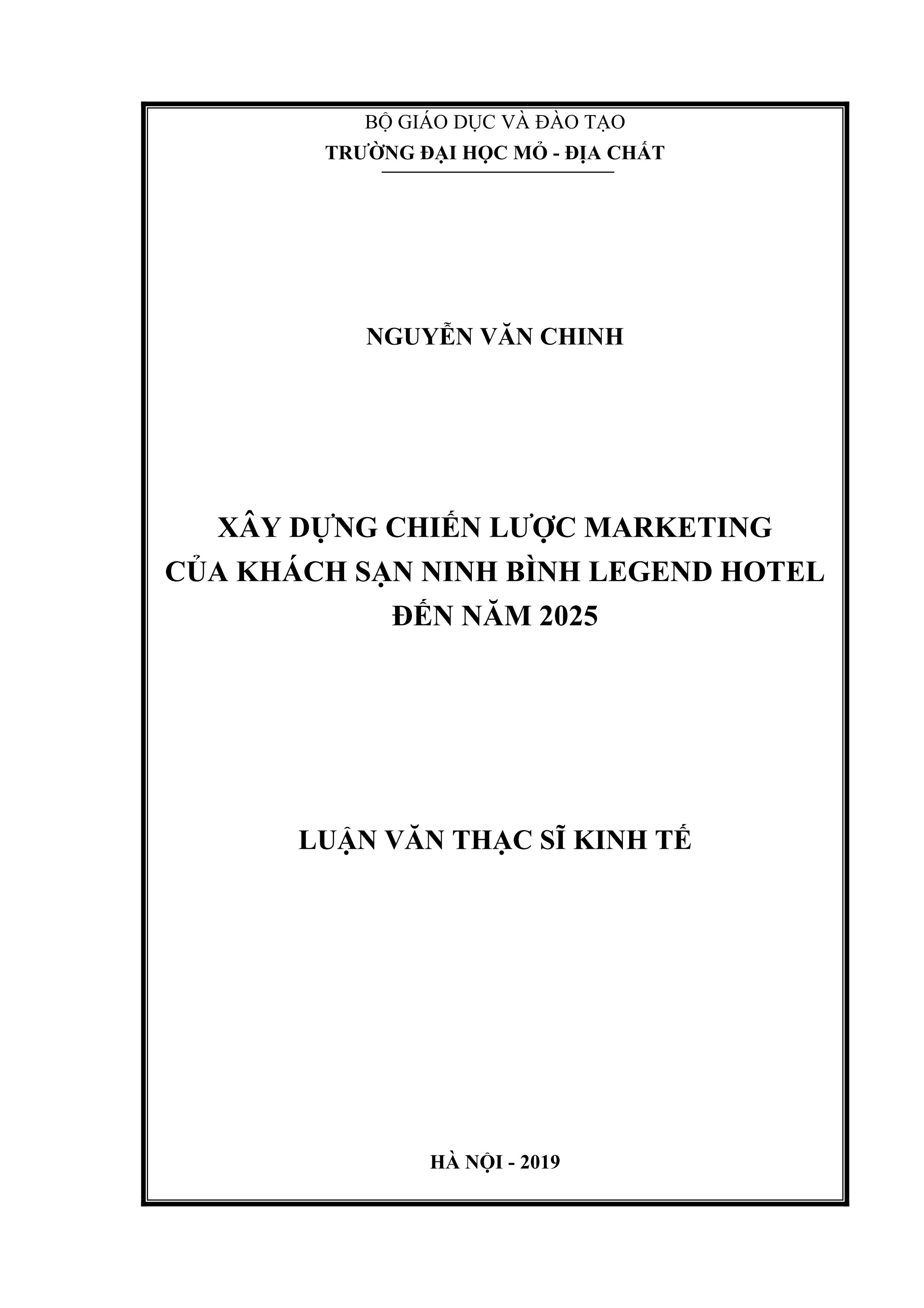 Xây dựng chiến lược Marketing của khách sạn Ninh Bình Legend Hotel đến năm 2025 : Luận văn thạc sĩ Kinh tế / Nguyễn Văn Chinh
