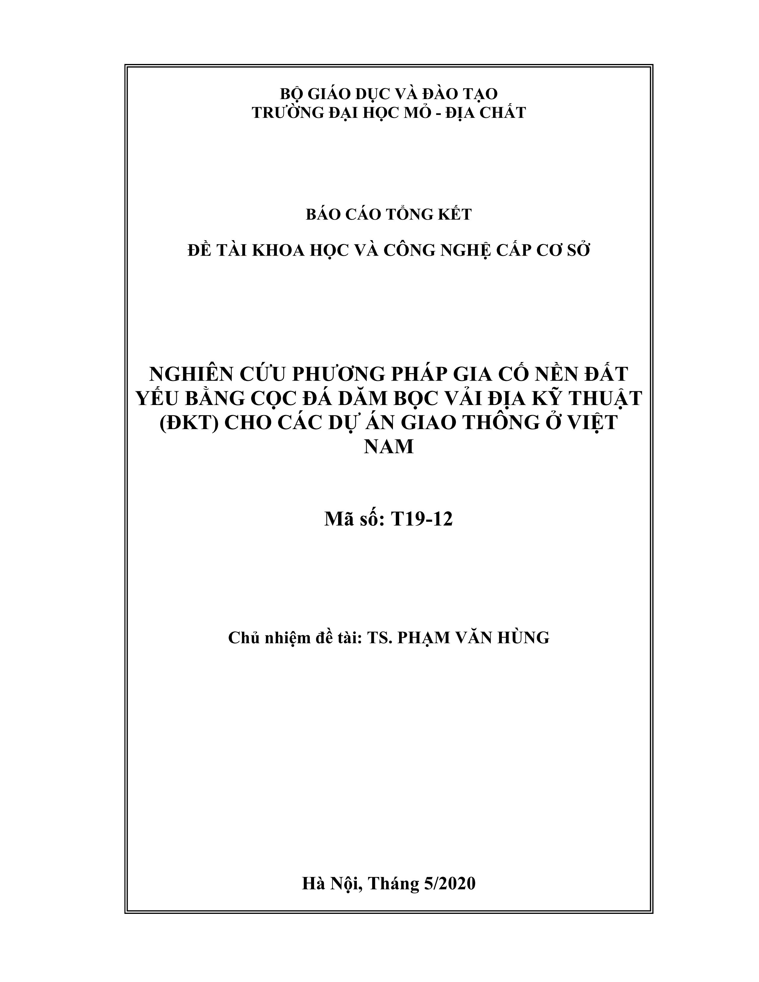 Nghiên cứu phương pháp gia cố nền đất yếu bằng cọc đá dăm bọc vải địa kỹ thuật (ĐKT) cho các dự án giao thông ở Việt Nam : Đề tài khoa học và công nghệ cấp cơ sở / Phạm Văn Hùng