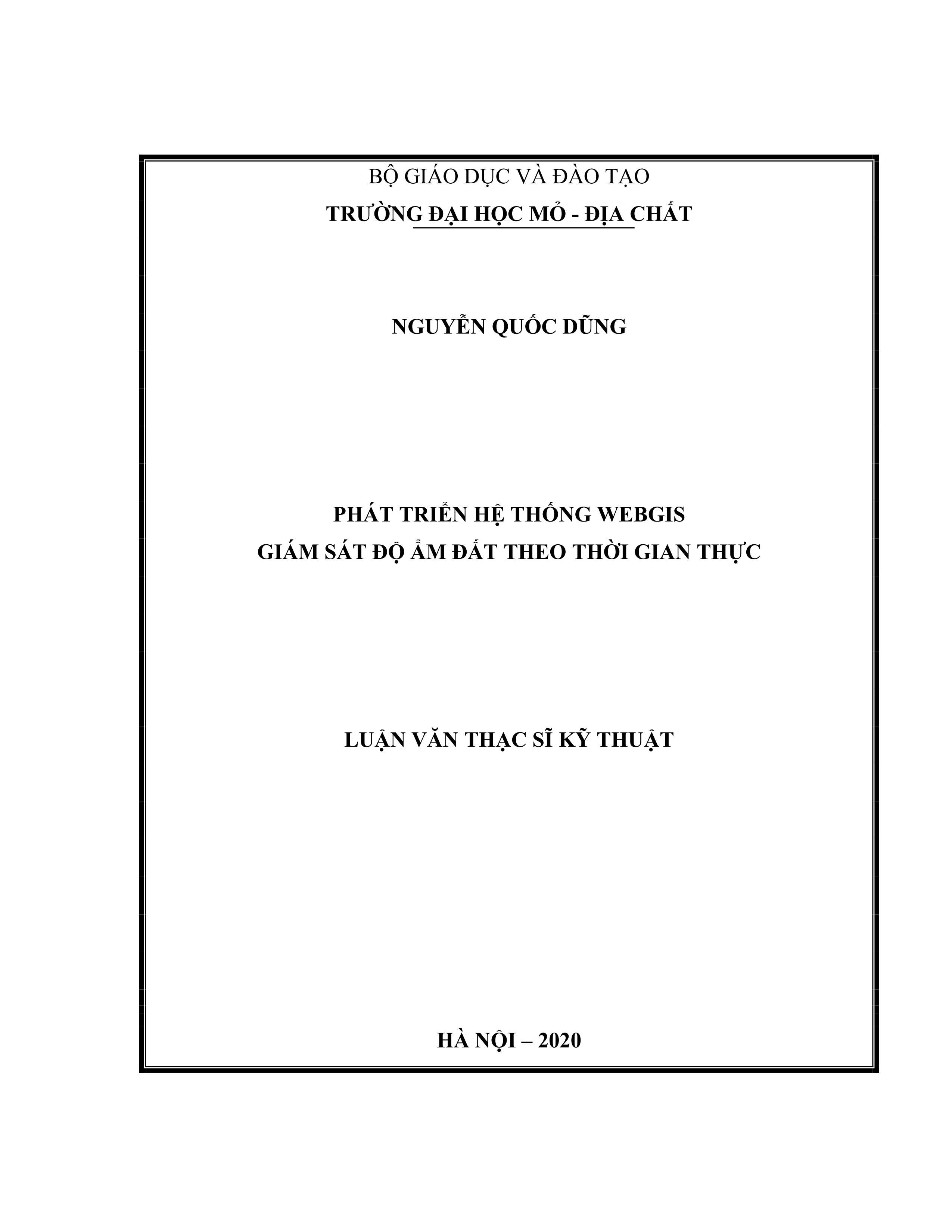 Phát triển hệ thống Webgis giám sát độ ẩm đất theo thời gian thực : Luận văn thạc sĩ kỹ thuật / Nguyễn Quốc Dũng