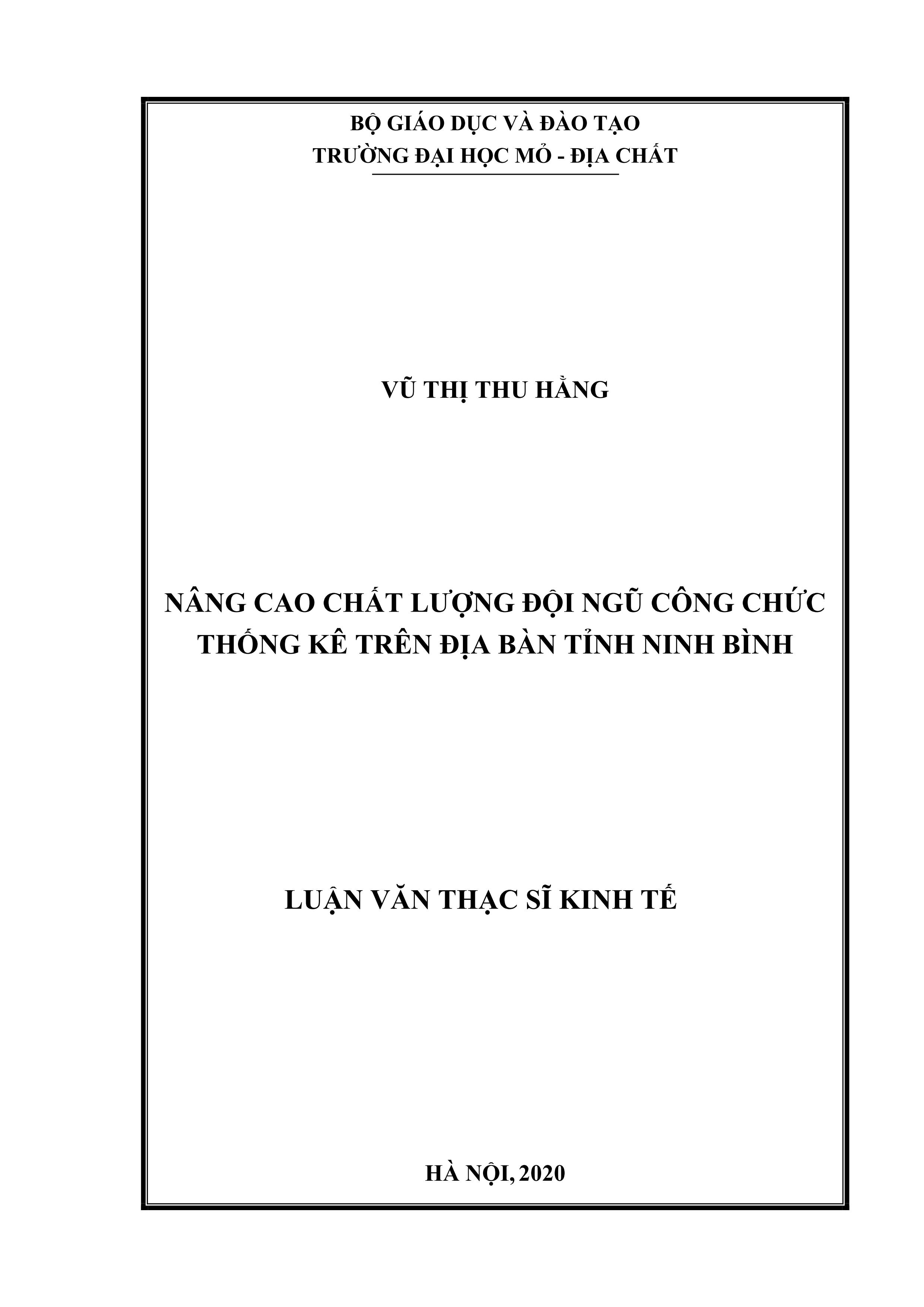 Nâng cao chất lượng đội ngũ công chức Thống kê trên địa bàn tỉnh Ninh Bình : Luận văn thạc sĩ Kinh tế / Vũ Thị Thu Hằng