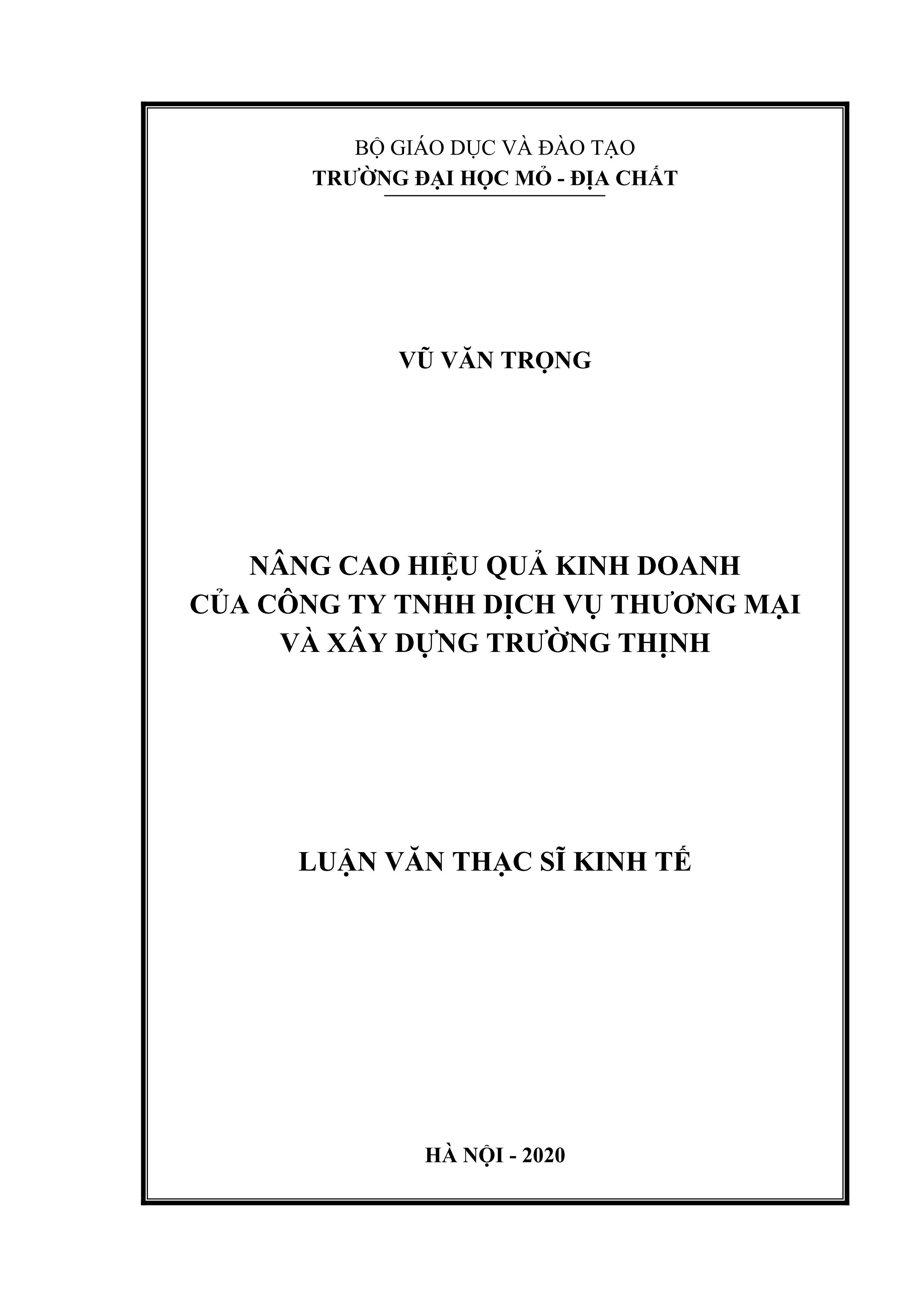 Nâng cao hiệu quả kinh doanh của Công ty Trách nhiệm hữu hạn Dịch vụ Thương mại và Xây dựng Trường Thịnh : Luận văn thạc sĩ Kinh tế / Vũ Văn Trọng