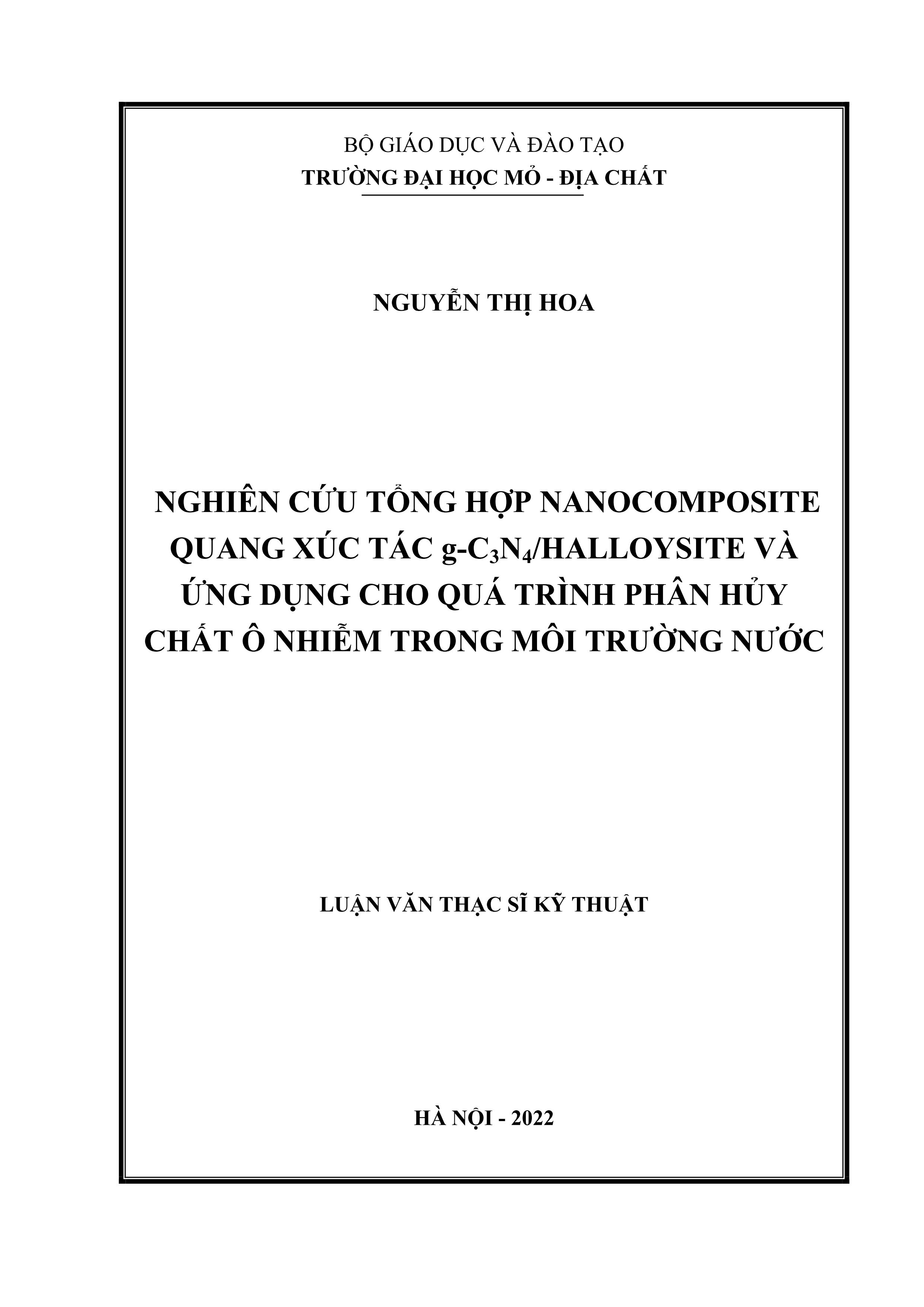 Nghiên cứu tổng hợp vật liệu nanocomposite quang xúc tác g-C3N4/ Luận văn thạc sĩ kỹ thuật / Halloysite và ứng dụng cho quá trình phân hủy chất ô nhiễm trong môi trường nước :