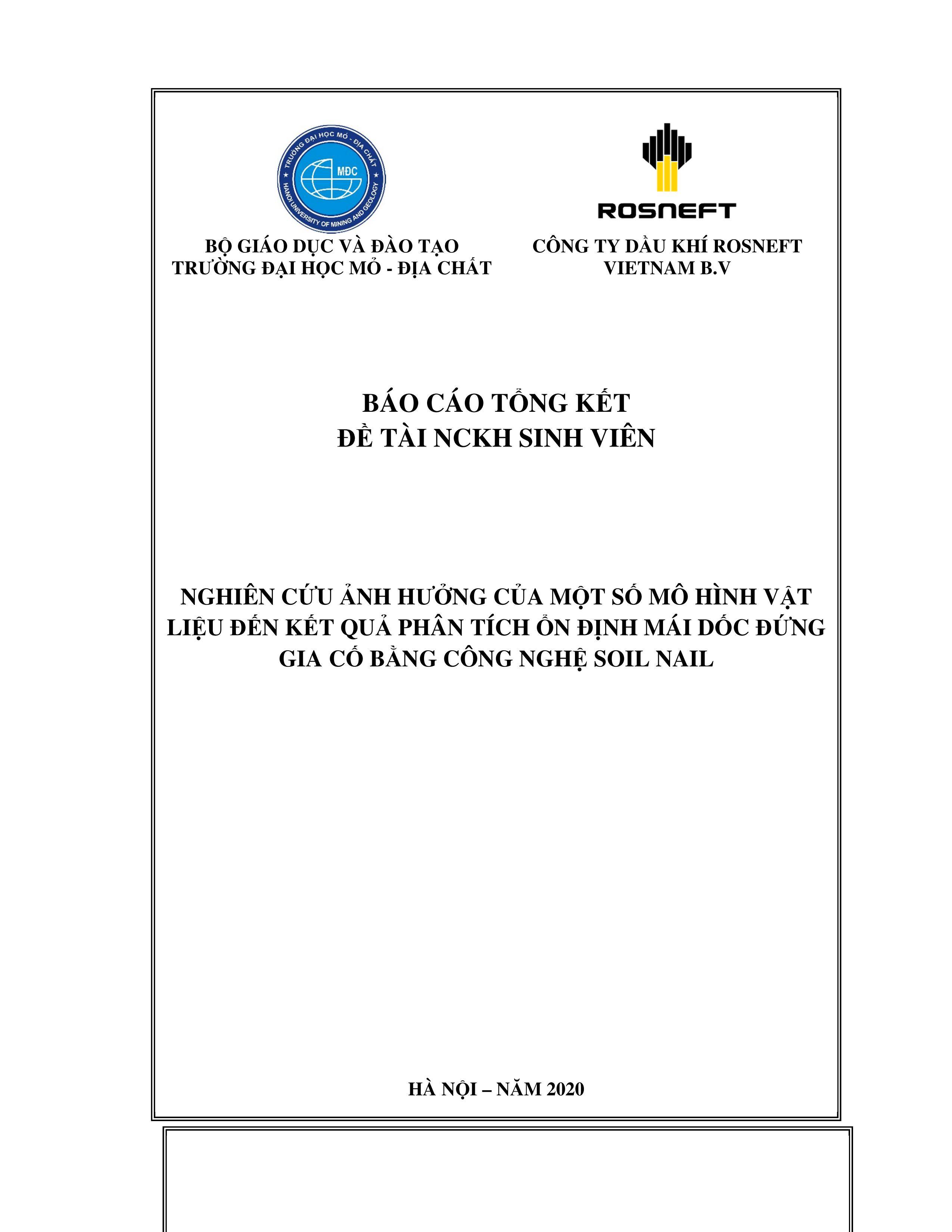 Nghiên cứu ảnh hưởng của một số mô hình vật liệu đến kết quả phân tích ổn định mái dốc đứng gia cố bằng công nghệ Soil Nail : Đề tài khoa học và công nghệ cấp cơ sở / Phạm Văn Tuấn