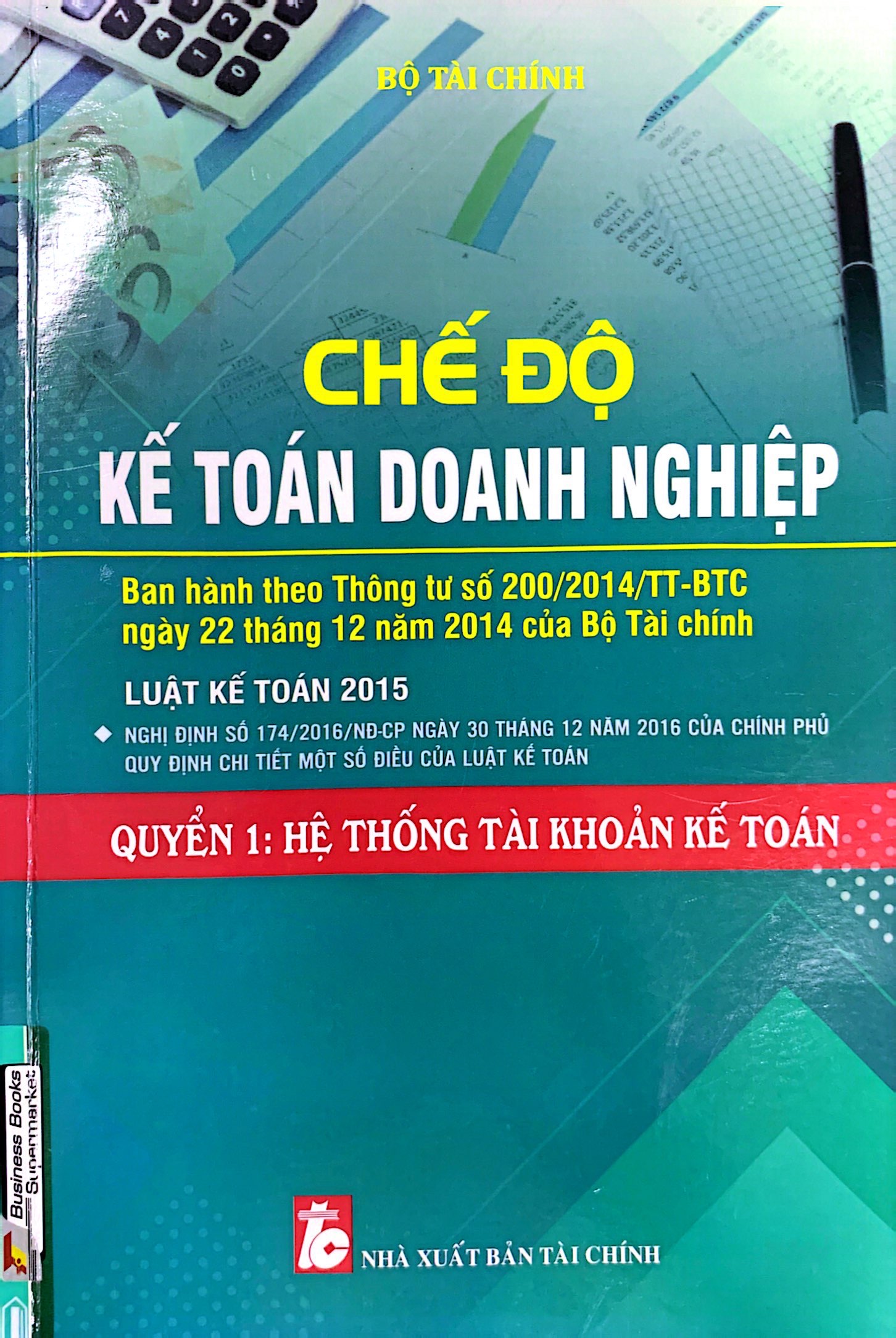 Chế độ kế toán doanh nghiệp Quyển 1 Hệ thống tài khoản kế toán H. : Tài Chính 551tr. ; 24cm. Giới thiệu toàn văn Luật Kế toán với những quy định chung và quy định cụ thể về nội dung công tác kế toán, tổ chức bộ máy kế toán và người làm kế toán, hoạt động kinh doanh dịch vụ kế toán, quản lý nhà nước về kế toán cùng các điều khoản thi hành; trình bày những quy định chung về chế độ kế toán doanh nghiệp và hệ thống tài khoản kế toán theo Thông tư số 200/2014/TT-BTC ngày 22 tháng 12 năm 2014 của Bộ Tài chính