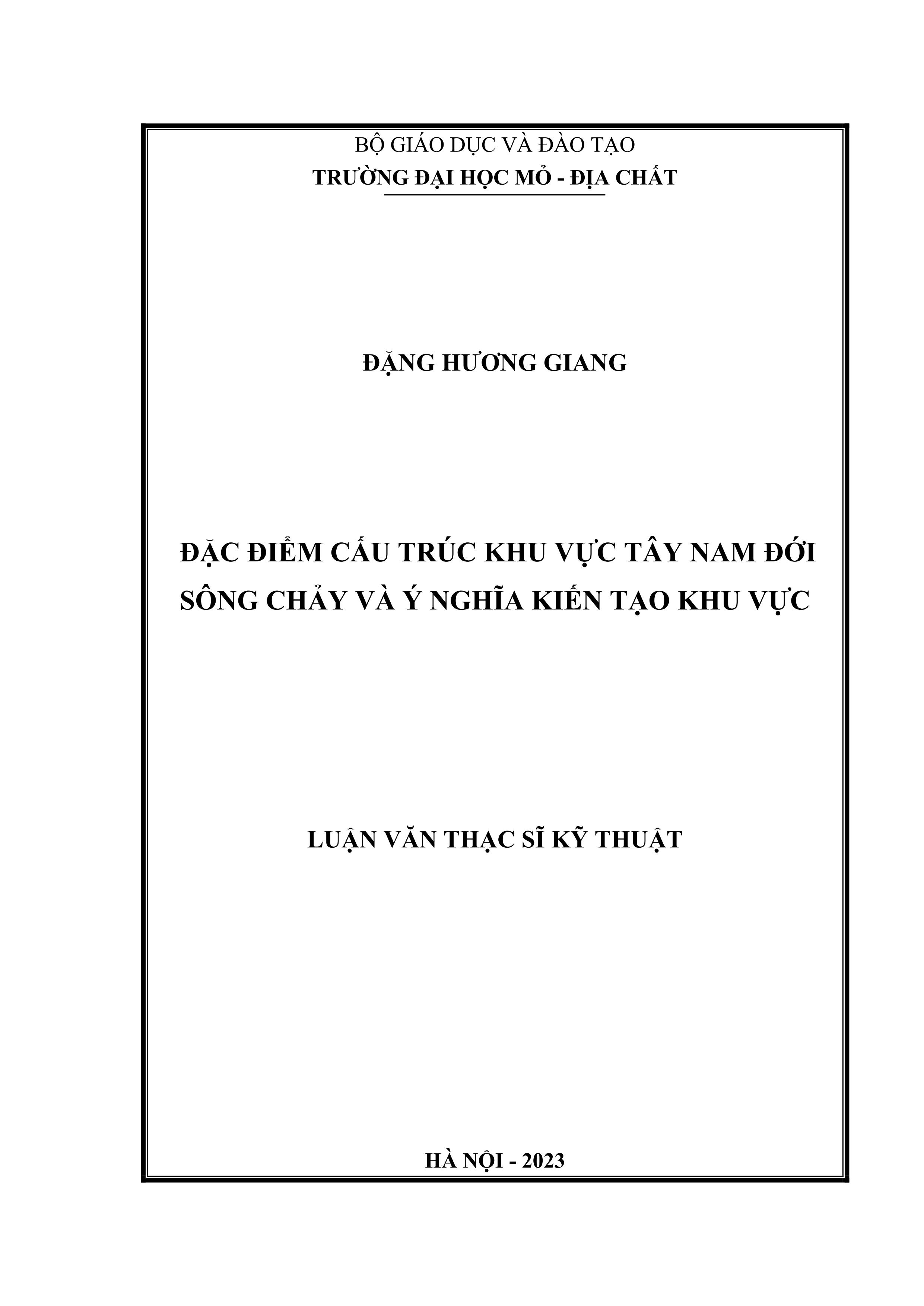 Đặc điểm cấu trúc khu vực Tây Nam Đới sông Chảy và ý nghĩa kiến tạo khu vực : Luận văn thạc sĩ kỹ thuật / Đặng Hương Giang