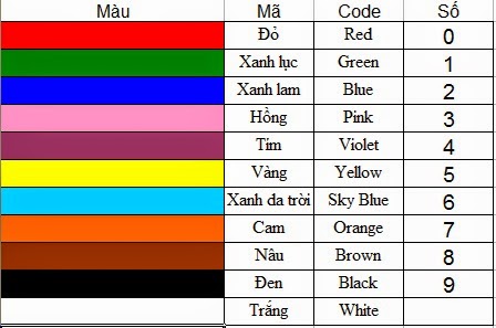 * Yêu cầu đầu ra: Nhãn mã màu thể hiện đúng theo quy tắc mã màu, đúng cấu trúc.