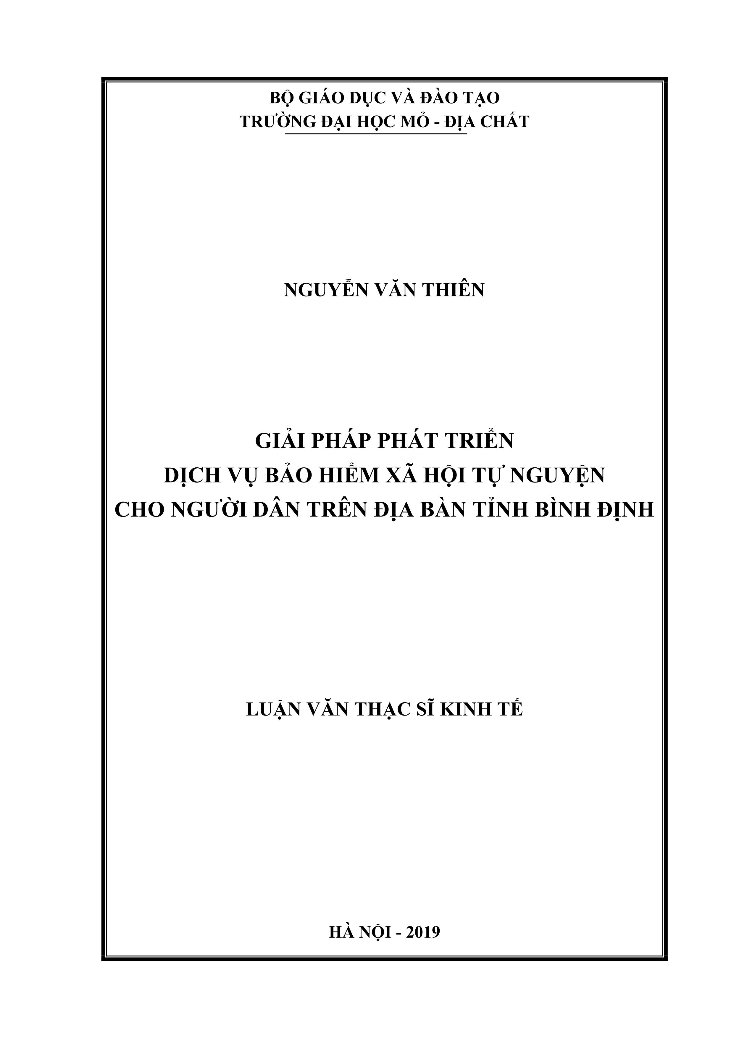 Giải pháp phát triển dịch vụ bảo hiểm xã hội tự nguyện cho người dân trên địa bàn tỉnh Bình Định : Luận văn thạc sĩ Kinh tế / Nguyễn Văn Thiên