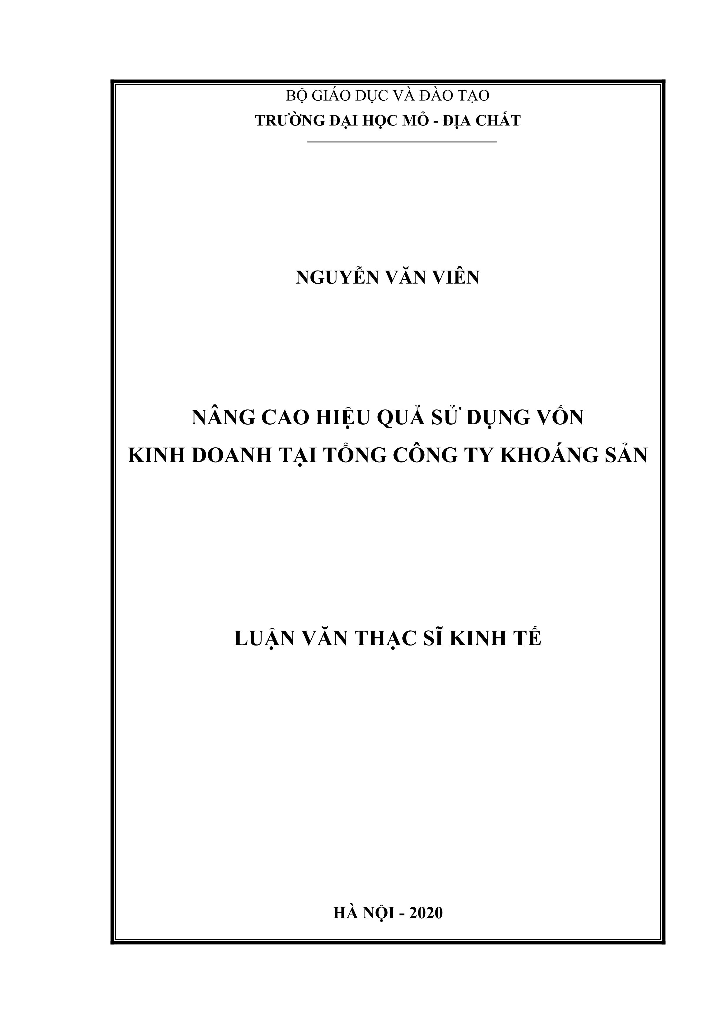 Nâng cao hiệu quả sử dụng vốn kinh doanh tại Tổng công ty Khoáng sản : Luận văn thạc sĩ Kinh tế / Nguyễn Văn Viên