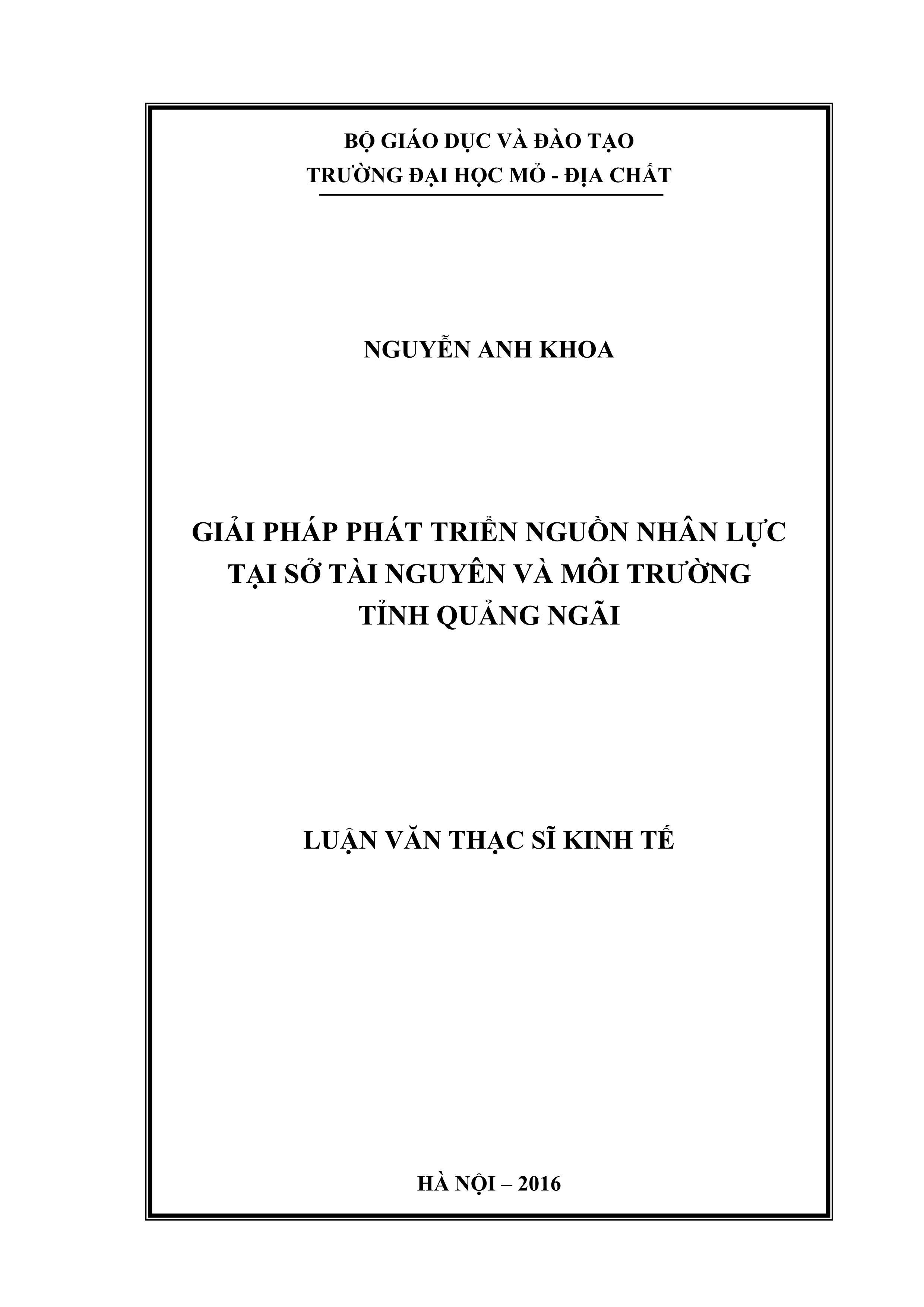 Giải pháp phát triển nguồn nhân lực tại sở tài nguyên và môi trường tỉnh Quảng Ngãi : Luận văn thạc sĩ / Nguyễn Anh Khoa