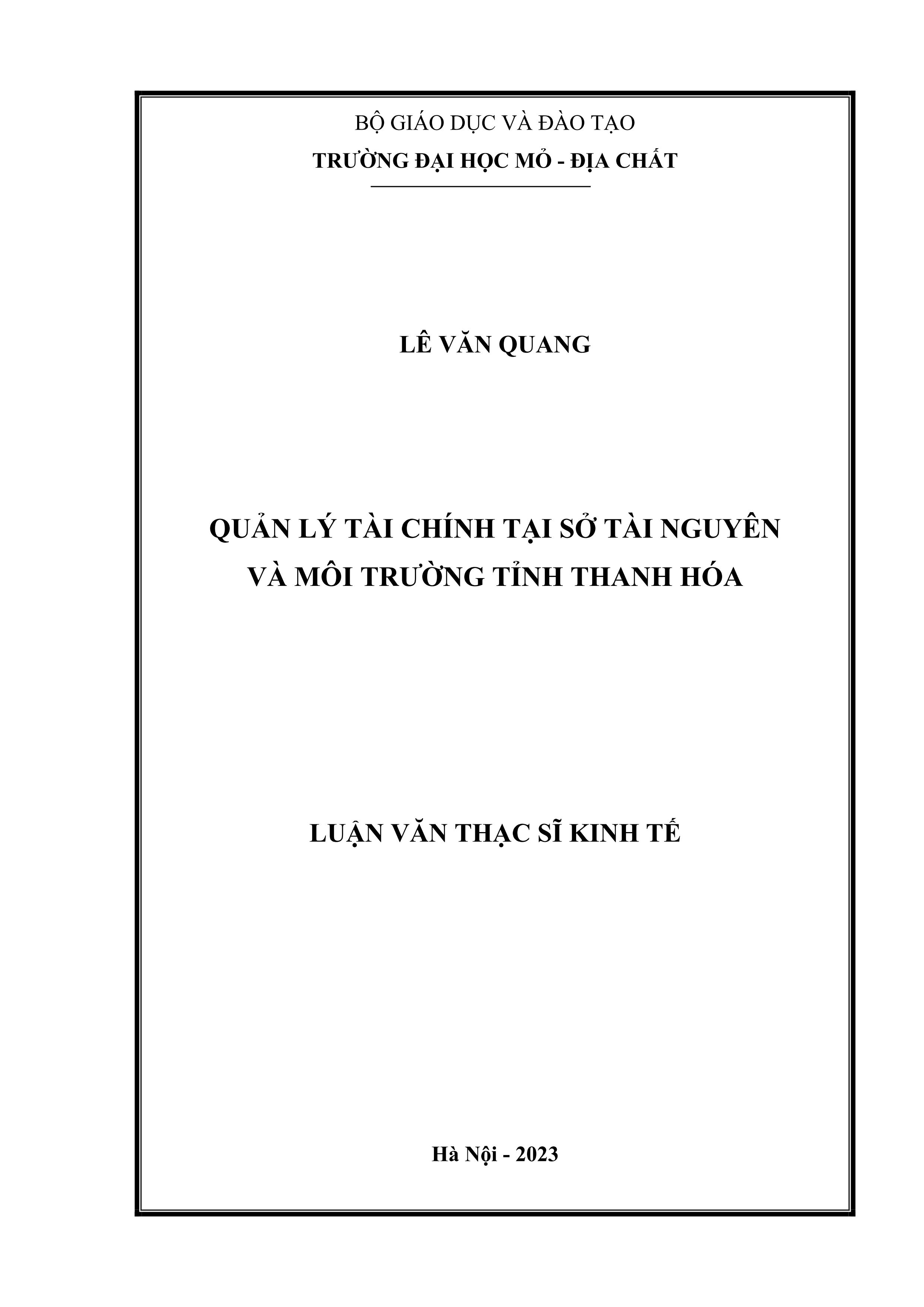 Quản lý tài chính tại Sở tài nguyên và môi trường tỉnh Thanh Hóa : Luận văn thạc sĩ Kinh tế / Lê Văn Quang